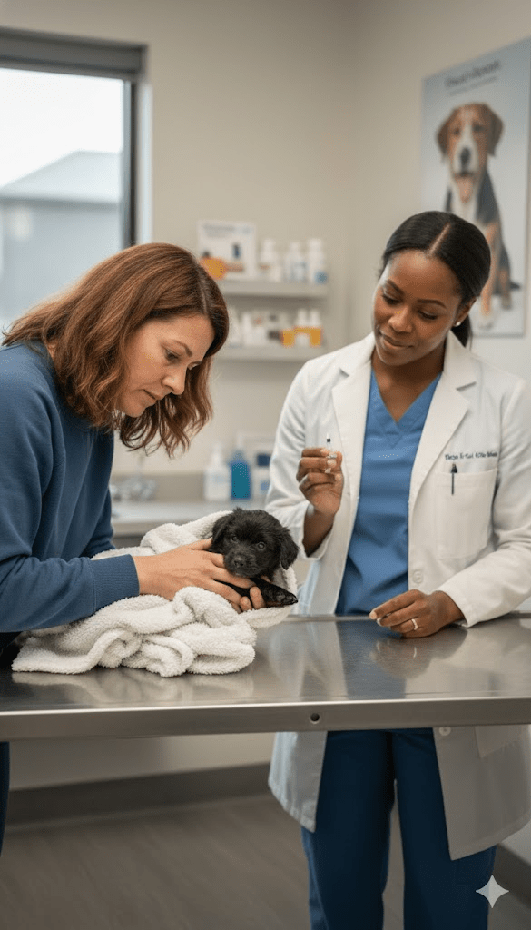 The next few hours were a blur of frantic activity. Sarah carefully gathered the other puppies, placing them in a makeshift carrier, and rushed them all to the nearest veterinary clinic. The prognosis for the weakest puppy, whom she had already named “Lucky,” was grim. Dehydrated, malnourished, and riddled with parasites, his tiny body was shutting down. The vet was honest, preparing Sarah for the worst. Yet, as days turned into a week, Lucky, against all odds, began to show tiny flickers of life. Sarah visited him daily, whispering words of encouragement, her touch a lifeline. His siblings, thankfully, were in better condition and quickly found foster homes through a local rescue organization. But Lucky, her Lucky, was still fighting. There were setbacks, moments of despair when his breathing became shallow, and his eyes glazed over. Each time, Sarah’s resolve hardened; she wouldn’t give up on him.